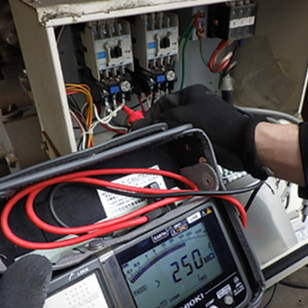 各機能の異常有無、圧力タンクの封入圧の確認、メカニカルシールの漏水有無、外部警報出力の確認、電流値測定、絶縁抵抗値測定、各種圧力確認等